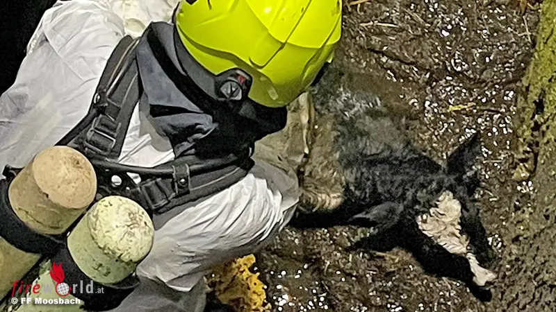 Oö: Feuerwehrleute in Moosbach in der Güllegrube → neugeborenes Kalb gerettet
