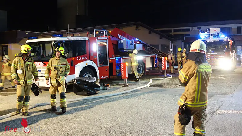 VOMP (TIROL): Zu einem Dachstuhlbrand wurden die Feuerwehren Vomp und Schwaz am Montagabend, 19. September 2021, gerufen. In einer als Wäscherei genutzten Halle brannte ein Wäschestapel, das Feuer griff auf den Dachstuhl über.
