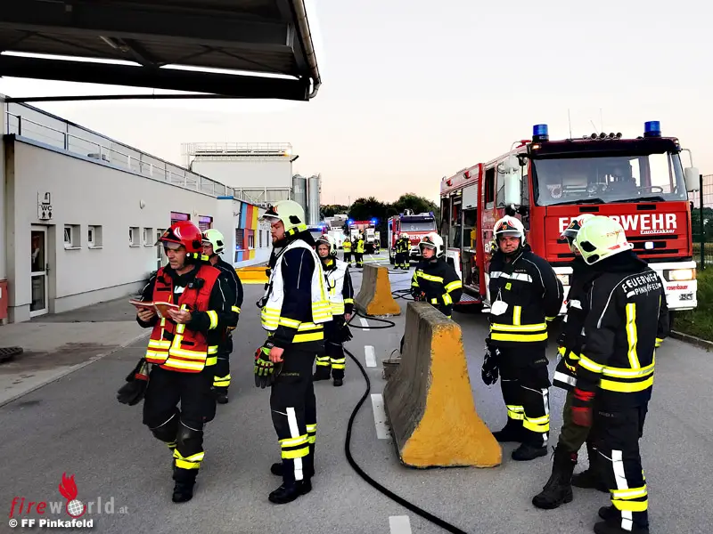 PINKAFELD (BGLD): Am Abend des 24. September 2021 fand in der Firma Austrotherm eine Einsatzübung der Feuerwehr Pinkafeld statt. Übungsannahme war ein Unfall mit einem mit Säure gefülltem 1.000 Liter IBC- Tank.