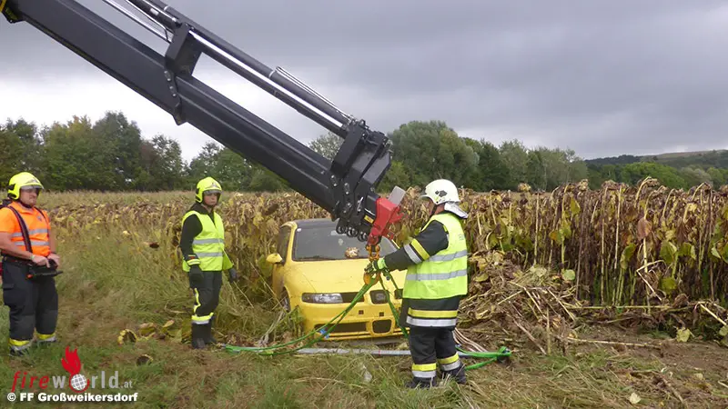 Auf der L27 zwischen Großweikersdorf und Unterthern war ein Fahrzeuglenker mit seinem Seat von der Fahrbahn abgekommen und in einem Sonnenblumenfeld gelandet. Der Fahrzeuginsasse war dabei glücklicherweise unverletzt geblieben und konnte den Feuerwehrnotruf „122″ verständigen. Beim Eintreffen der FF Großweikersdorf stand der PKW im Feld und die niedergemähten Sonnenblumen verhinderten dass der Pkw aus eigener Kraft aus dem Feld fahren konnte.