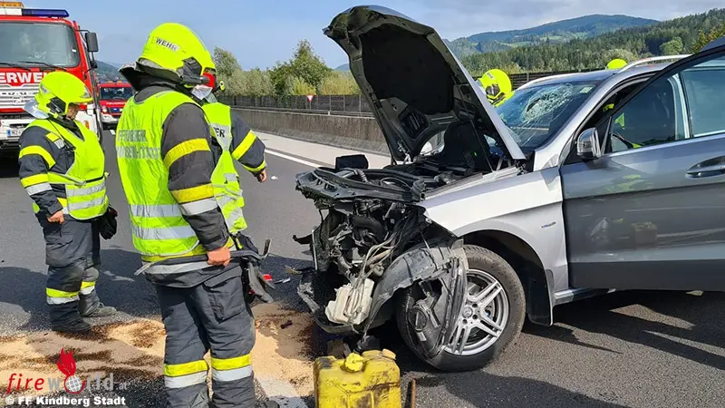 KINDBERG (STMK): Die Freiwillige Feuerwehr Kindberg-Stadt wurde am Samstagnachmittag, 2. Oktober 2021, zu einem schweren Verkehrsunfall auf die S6 Semmering Schnellstraße in Fahrtrichtung Bruck/Mur alarmiert. Ein PKW-Lenker verlor die Kontrolle über sein Fahrzeug und prallte im Bereich der Abfahrt Mürzhofen frontal gegen einen Aufprallschutz.