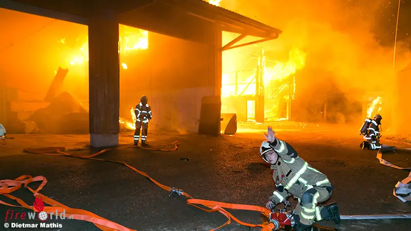 Vbg: Vollbrand einer Lagerhalle des Gstach-Hofes in Rankweil → rund 200 Kräfte im Einsatz