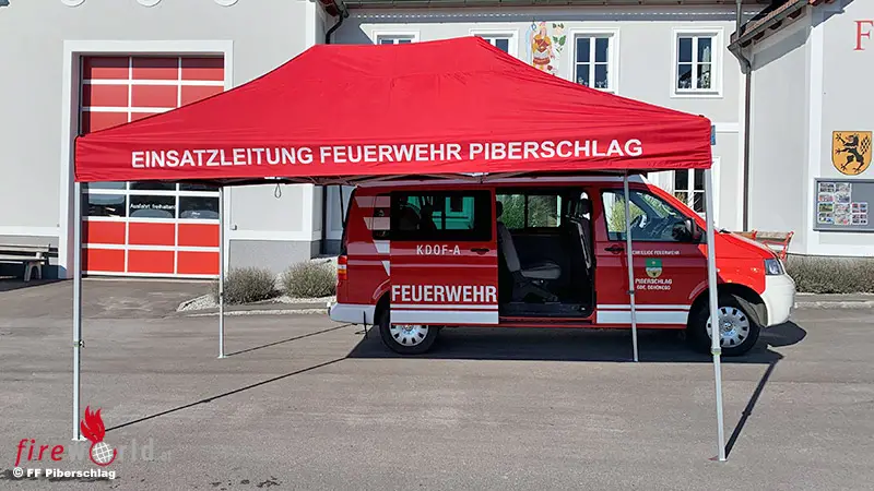 PIBERSCHLAG (OÖ): Am Mittwoch, dem 20. Oktober 2021, konnte der Kommandant der Freiw. Feuerwehr Piberschlag, HBI Helmut Atzmüller, ein Schnelleinsatzzelt für das Kommandofahrzeug entgegennehmen.