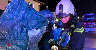 Die Feuerwehr leuchteten die Unfallstelle aus und unterstützen das Bergungsunternehmen bei der Arbeit. Als die Sattelzugmaschine und der Auflieger entfernt waren, mussten an der Unfallstelle noch Betriebsstoffe aufgenommen sowie die starke Verschmutzung der Bundesstraße beseitigen werden.