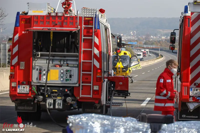 ALLHAMING (OÖ): Auf der A1 Westautobahn kurz vor dem Knoten Haid in Fahrtrichtung Wien kam gegen 12:30 Uhr des 27. Oktober 2021 zu einem schweren Verkehrsunfall.