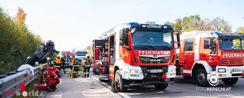 Der Mann wurde beim Verkehrsunfall im Pkw eingeklemmt und von den Feuerwehren Allhaming und Pucking-Hasenufer aus dem Fahrzeug geborgen. Er erlitt Verletzungen unbestimmten Grades und wurde nach der Erstversorgung durch die Rettung Neuhofen mit dem Rettungshubschrauber Christophorus 10 in das Unfallkrankenhaus Linz geflogen. Der Verkehr auf der Autobahn musste für ca. eine Stunde gesperrt werden