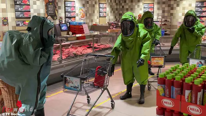 GOCH (DEUTSCHLAND): Eine nicht alltägliche Übung hatte der ABC-Zug der Freiwilligen Feuerwehr der Stadt Goch Ende Oktober 2021. Die Spezialkräfte für Einsätze mit atomaren, biologischen oder chemischen Gefahrstoffen waren im Supermarkt einkaufen.