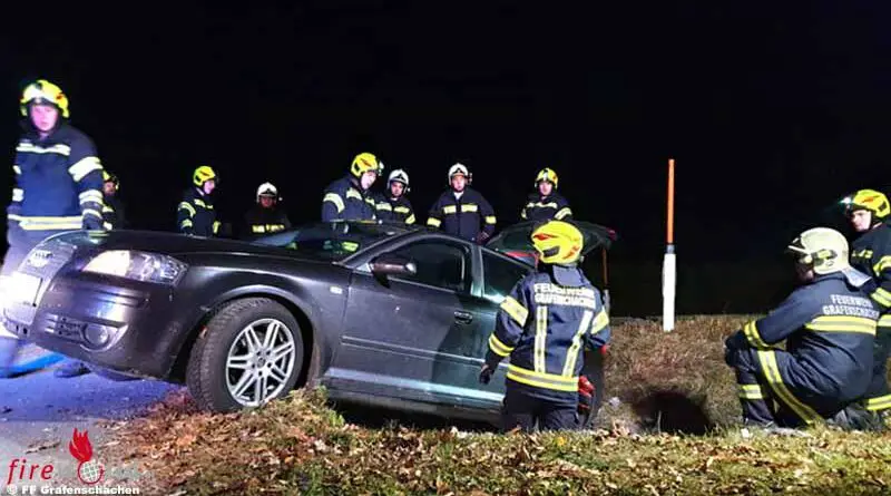 Oö: Achsverlust bei Baumstumpfkollision auf der B 132 bei Lacken