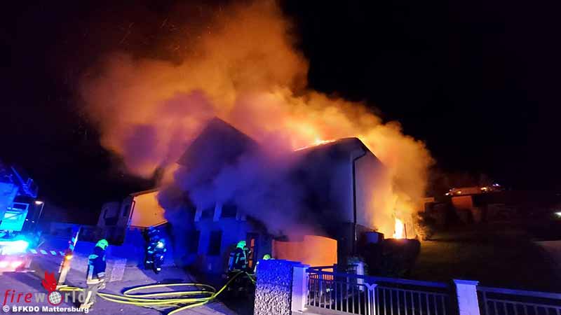SIEGGRABEN (BGLD): Ein Gebäudebrand der höchsten Alarmstufe (B3) in der Gemeinde Sieggraben (Bezirk Mattersburg) forderte in den frühen Morgenstunden des 8. November 2021 sechs Feuerwehren aus dem Bezirk Mattersburg und zwei weitere Wehren.