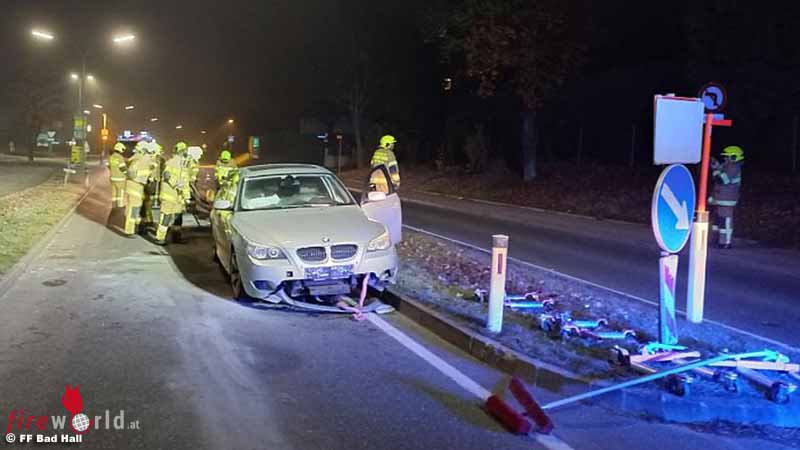 Oö: Pkw mäht Verkehrsinsel-Bestandteile in Bad Hall nieder