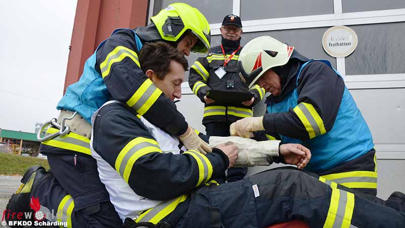 BEZIRK SCHÄRDING (OÖ): Die Branddienstleistungsprüfung wurde am 6. November 2021 erstmals im Bezirk Schärding in der Stufe III (Gold) abgenommen. 21 Einsatzkräfte aus dem Bewerterstab und dem Bezirks-Feuerwehrkommando – welche vor zwei Jahren die Stufe Silber absolviert haben – stellten sich in drei Gruppen dem Szenario.