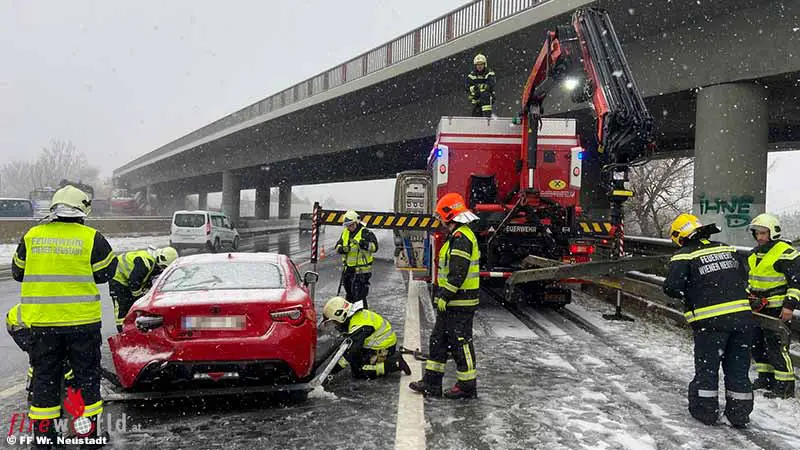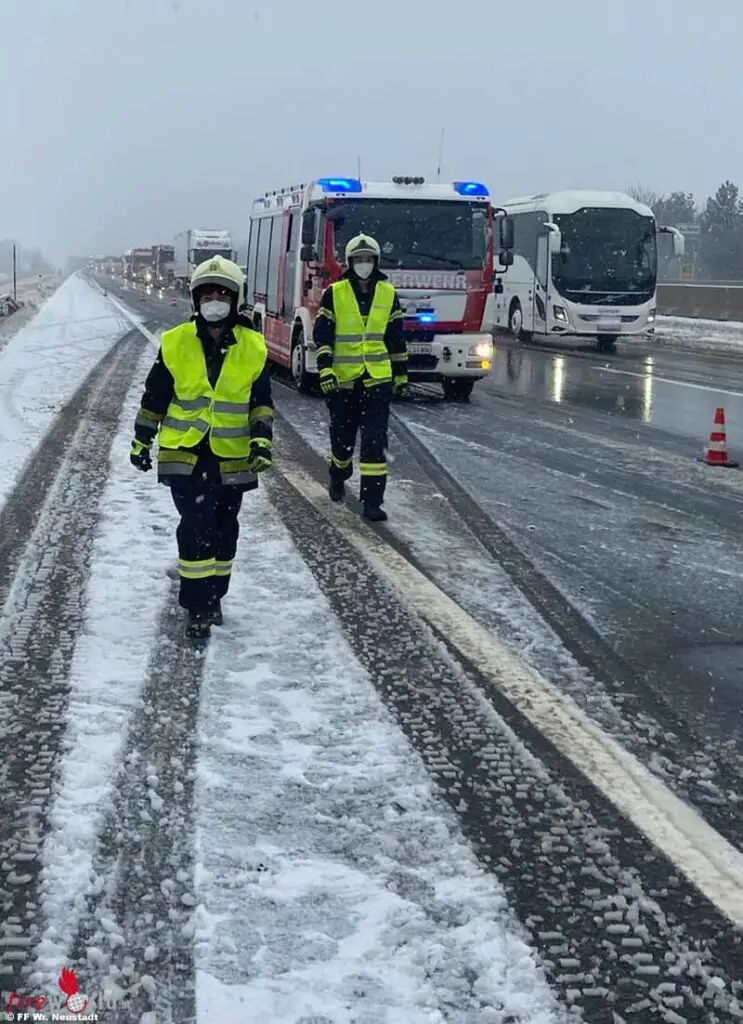 Neben einem Einsatz auf der Südautobahn rückte die FF Wiener Neustadt außerdem nach Hochwolkersdorf aus, um die örtlichen Einsatzkräfte bei der Bergung eines verunfallten Linienbusses zu unterstützen. Bis in die Nachmittagsstunden rückten die Freiwilligen Feuerwehren des Bezirks Wiener Neustadt zu einem Dutzend wetterbedingter Einsätze aus.