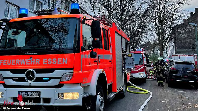 D: Feuer in Essen → 3 Personen mit Fluchthauben und über Drehleiter gerettet, Fw-Mann vom Hund gebissen