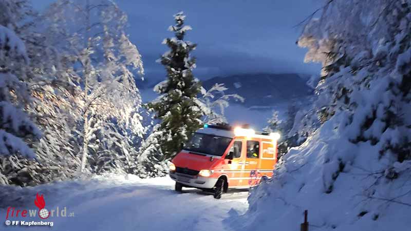 KAPFENBERG (STMK): Kurz vor 16:00 Uhr wurde die Feuerwehr Kapfenberg am 28. November 2021 zu einer Fahrzeugbergung in den Ortsteil Winkl alarmiert. Innerhalb von wenigen Minuten konnte zwei Einsatzfahrzeuge zur angegeben Adresse ausrücken, um sich dort von einem Lotsen den weiteren Anfahrtsweg beschreiben zu lassen.
