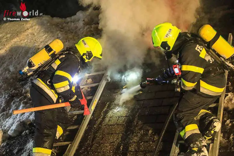 Um an den Brandherd zu gelangen, wurde zeitgleich das Dach mittels Motorsägen, Äxten und Einreißhaken geöffnet und mit einem Außenangriff begonnen, so Sulzer weiter.