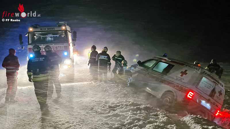 Die Feuerwehren Oberndorf-Raabs und Raabs standen am Abend bei einer Bergung eines Krankentransportwagens im Einsatz. Auf der L52 bei der „Siedlung Linde“ stürzte das Fahrzeug in den Straßengraben. Der transportierte Patient und die Begleiter blieben glücklicherweise unverletzt.