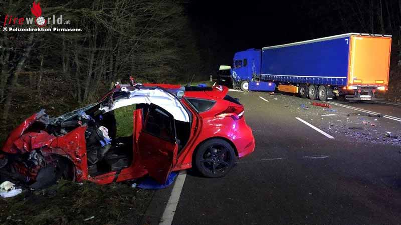 Ersten Ermittlungen zufolge befuhr der 52-jährige Fahrer aus dem Saarpfalz-Kreis mit seinem Ford Focus die B10 von Pirmasens kommend in Richtung Landau. Am Beginn der zweispurigen Richtungsfahrbahn kam er nach einer Linkskurve aus bislang ungeklärter Ursache auf die Gegenspur und kollidierte dort frontal mit einer entgegenkommenden Sattelzugkombination, geführt von einem 50-jährigen Mann, ebenfalls aus dem Saarpfalz-Kreis.