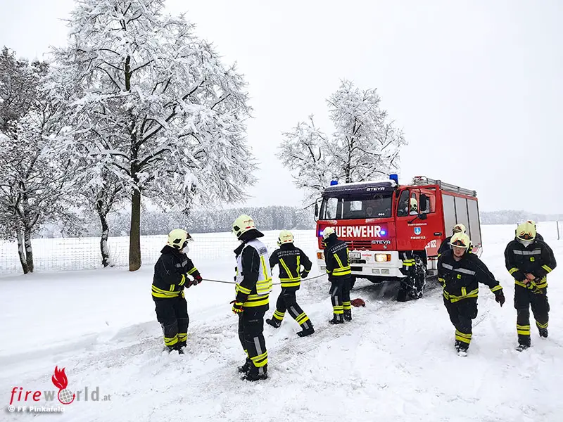 Bgld: Neuschnee sorgt am 9.12.2021 für 12-Stunden voll mit Bergungseinsätzen in Pinkafeld