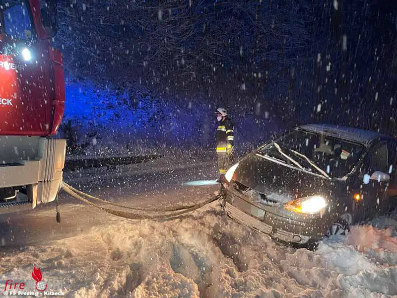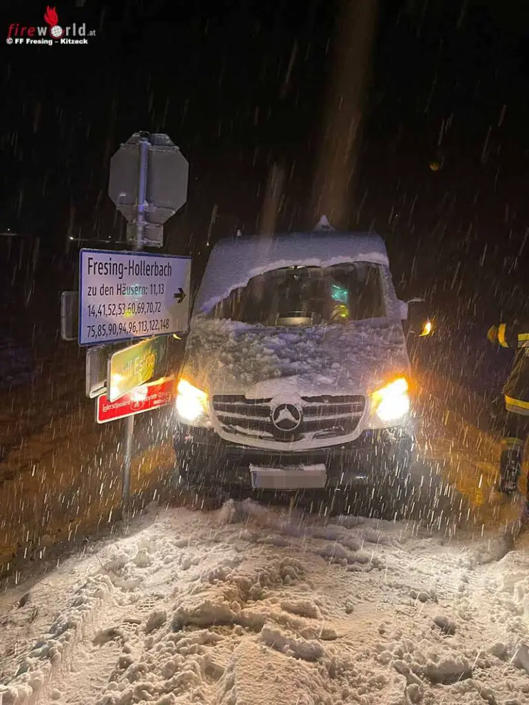 KITZECK (STMK): Auf den Tag genau wie 2020 brachte die angekündigte Schneefront am 9. Dezember 2021 einige Einsätze für die Freiwillige Feuerwehr Fresing – Kitzeck mit sich.