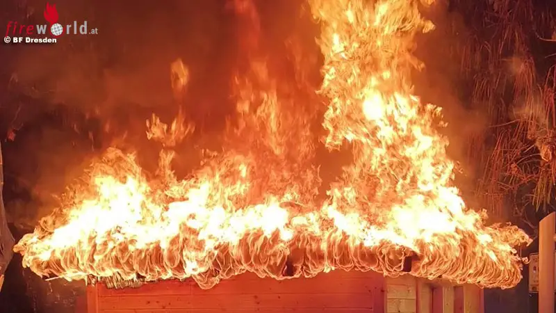 Der Integrierten Regionalleitstelle Dresden wurden über den Notruf 112 eine starke Rauchentwicklung sowie Feuerschein auf einem ehemaligen Bahngelände gemeldet. Als die alarmierten Kräfte der Berufsfeuerwehr an der Einsatzstelle eintrafen, brannten auf einer Fläche von etwa 13 Quadratmetern gelagerte Bahnschwellen in voller Ausdehnung. Der Brand war bereits so weit fortgeschritten, dass die Dachkonstruktion ebenfalls in Brand geraten war. Während ein Trupp unter Atemschutz mit einem Strahlrohr die Brandbekämpfung aufnahm, stellten weitere Trupps eine stabile Wasserversorgung her. Dazu mussten über 50 m Schlauchleitung verlegt werden. Nachdem der Brand unter Kontrolle war wurde Löschschaum eingesetzt, um das Eindringen des Löschmittels in das Brandgut zu optimieren. Im Rahmen einer Nachkontrolle gegen 22 Uhr stellten die Einsatzkräfte weitere Glutnester fest und löschten diese mit Wasser ab. Verletzt wurde niemand. Die Polizei hat die Ermittlungen zur Brandursache aufgenommen. Im Einsatz waren 22 Einsatzkräfte der Feuer- und Rettungswache Albertstadt, der Rettungswache Pieschen, der B-Dienst sowie der U-Dienst.