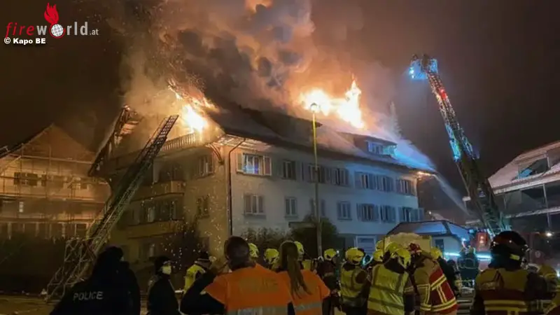 Schweiz: Ausgedehnter Dachstuhlbrand mit Rettung einer Person in Lützelflüh (Hasle bei Burgdorf)