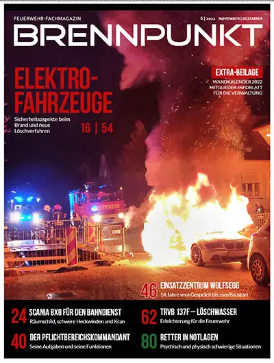 Kurz vor Weihnachten erscheint die letzte Ausgabe des Feuerwehrfachmagazins Brennpunkt für das Jahr 2021, die Nummer 6. Neben mehr als 120 informativen Seiten wartet darin auch wiederum der Riesen-Wandkalender für das kommende Jahr.