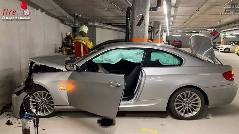 Schweiz: Autolenkerin (75) kracht in Wittenbach mit BMW gegen Tiefgaragenmauer