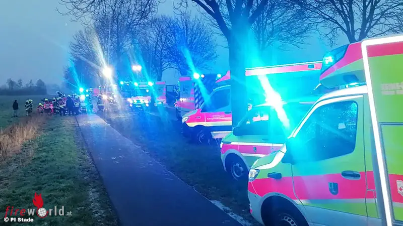 D: Vater kracht mit Pkw bei Drochtersen gegen Baum → drei Kinder eingeklemmt, 15-jährige Tochter verstorben