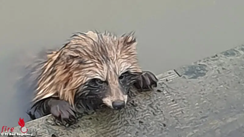D: Polizei und Feuerwehr retten erschöpften Waschbär aus der Elbe