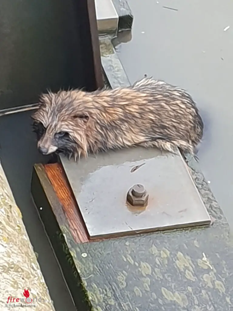 Um 13:08 Uhr alarmierten Passanten die Polizei, da sie einen pelzigen Vierbeiner an einem Brett in hilfloser Lage der Hafenanlage bemerkten. Das Tier kam aus eigener Kraft nicht mehr aus dem Becken. Bei dem zotteligen Tier handelte es sich um einen Waschbären, der durch die Kameraden der Feuerwehr mit Unterstützung eines Schlauchboots gerettet werden konnte.