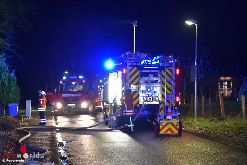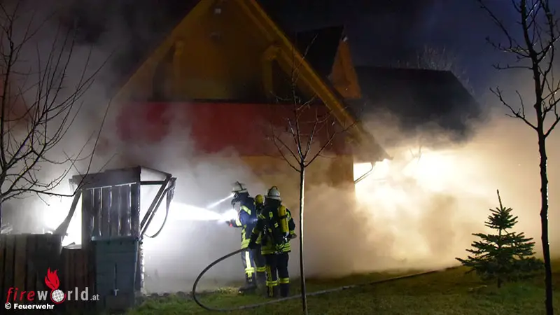 Die Flammen schlugen unter den Dachüberstand des direkt angrenzenden holzverkleideten Wohnhauses. Mit einem schnell eingeleiteten Löschangriff konnte ein Übergreifen auf das Gebäude in letzter Minute verhindert werden.