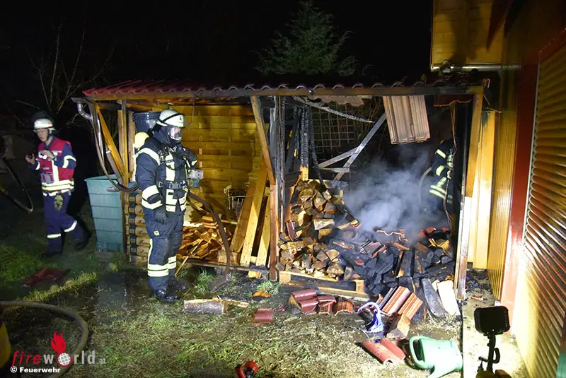 In Garlstorf geriet eine knappe halbe Stunde später ein hölzerner Unterstand in Brand (siehe auch Beitragsfoto). Bei Eintreffen der Feuerwehren Garlstorf und Gödenstorf/Oelstorf brannten der Unterstand und das darin gelagerte Kaminholz bereits in voller Ausdehnung.