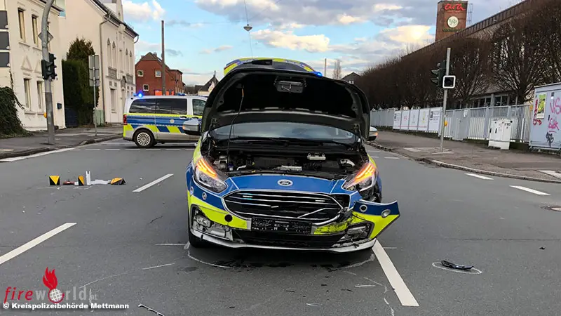 D: Pkw-Überschlag mit zwei Schwerverletzten nach Kollision mit Einsatz-Polizeifahrzeug auf Kreuzung in Langenfeld