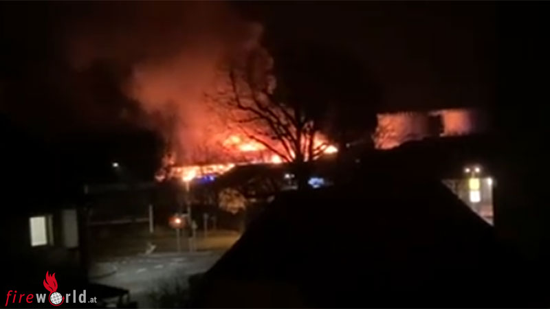 MARKTREDWITZ, LKR. WUNSIEDEL. (BAYERN): Am Abend des 1. Jänner 2022 stand in Marktredwitz eine Lagerhalle in Vollbrand. Polizei und Feuerwehr waren mit starken Kräften vor Ort. Der Bereich war großräumig gesperrt und auch der Schienenverkehr war beeinträchtigt.