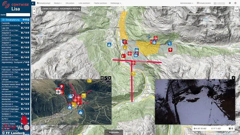Da der bisherige Verlauf keine Erfolge und auch keine weiteren Erkentnisse zum Verbleib der Person brachte, wurde gegen Mittag zur Unterstützung und Ablöse der Drohnenmannschaft, welche sich über 10 Stunden im Einsatz befand, die Drohne des BFV Kufstein nachalarmiert.
