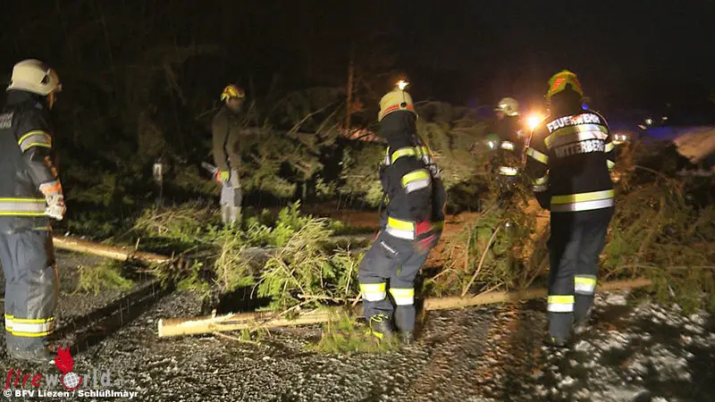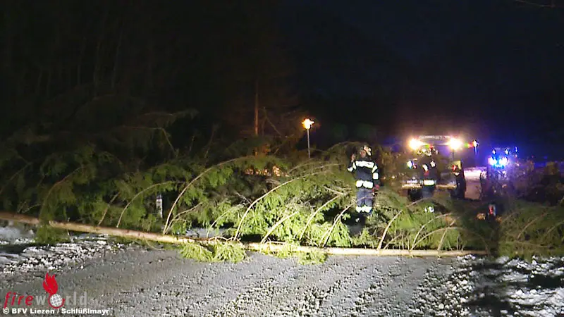 Mehrere Bäume waren aufgrund der heftigen Sturmböen zwischen den Ortsteilen Kaindorf und Zirting auf die L 728 gestürzt. Die Feuerwehr sicherte die Straße ab und beseitigte die Bäume, welche zuvor noch mittels Motorsäge von einem Waldarbeiter zerkleinert wurden.