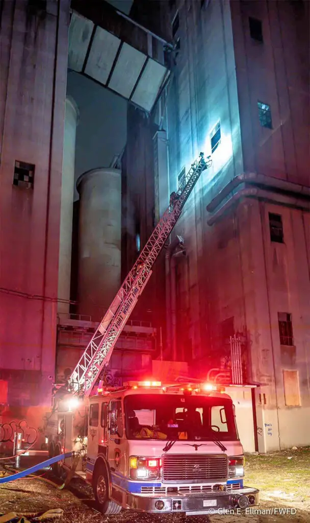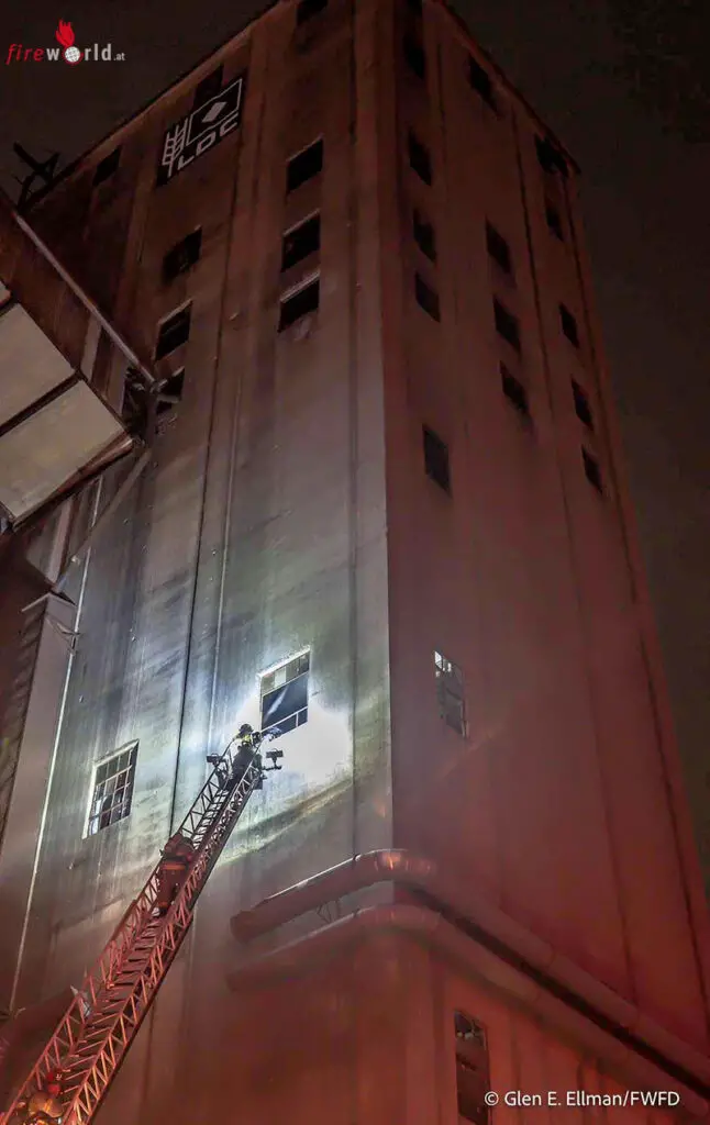 FORT WORTH (USA): In der Nacht auf den 1. Februar 2022 stand die Feuerwehr von Fort Worth (USA, Texas) beim Brand eines großen, leerstehenden Silos im Einsatz.