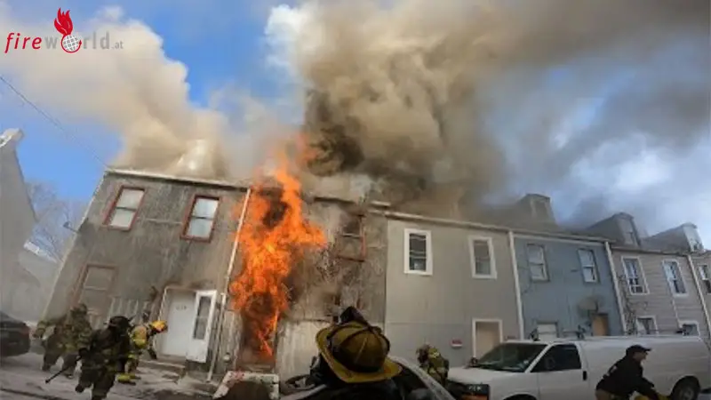 USA: Helmkamera-Einsatz bei 2. Alarm bei Reihenhausbrand in Harrisburg