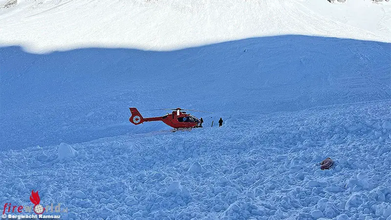 Die Leitstelle Traunstein schickte nach dem Notruf sofort die Bergwacht Ramsau, die Lawinenhundestaffel Chiemgau und den Traunsteiner Rettungshubschrauber „Christoph 14“ los; die Besatzung nahm im Anflug von Traunstein aus in Weißbach an der Alpenstraße einen Bergwacht-Lawinenhundeführer mit Suchhund auf und flog mit ihm weiter in die Ramsau. Für den zweiten Patienten war mittlerweile aus dem Pinzgauer Glemmtal auch der Notarzthubschrauber „Martin 6“ unterwegs. Als „Christoph 14“ mit dem Hundeführer auf der Lawine landete, hatte der Ersthelfer den Kopf des Verschütteten bereits ausgegraben; bis 12.50 Uhr schafften es die Retter, den 61-Jährigen komplett freizulegen, wobei ihre weiteren Wiederbelebungsversuche den Mann aber nicht mehr ins Leben zurückbringen konnten.
