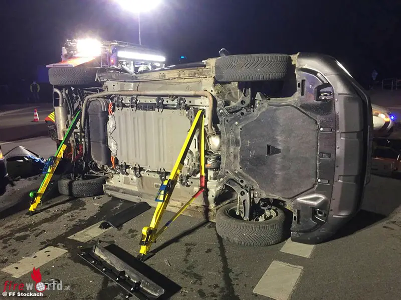 D: Unfall mit Personenrettung durch Windschutzscheibe und Hybrid-Fahrzeug-Beteiligung in Stockach