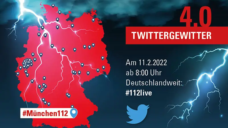 Unter den Hashtags #München112 und #112live ist das „Gewitter“ live auf Twitter zu verfolgen. Natürlich setzen wir uns wieder hohe Ziele für diesen Tag, nachdem der #112live im letzten Jahr stundenlang an Platz 1 der Twittertrends stand. Alleine auf unserem Twitteraccount @BFMuenchen wurden 2021 mehr als 2 Millionen Impressions erzeugt.