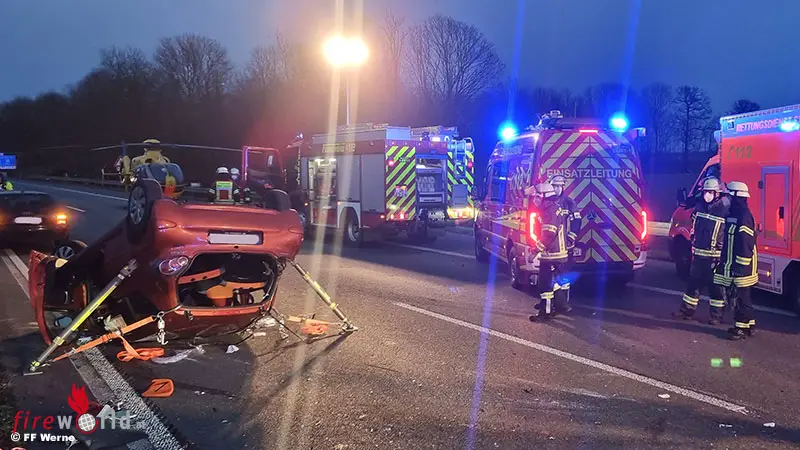 D: Schwerverletzte in überschlagenem Auto auf der Bundesautobahn 1 bei Werne