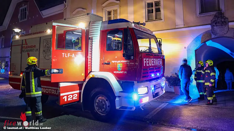 NEUMARKT IM HAUSRUCKKREIS (OÖ): Die Feuerwehr stand am späten Sonntagabend, 13. Februar 2022, erneut bei einem Brand im Ortszentrum von Neumarkt im Hausruckkreis (Bezirk Grieskirchen) im Einsatz.