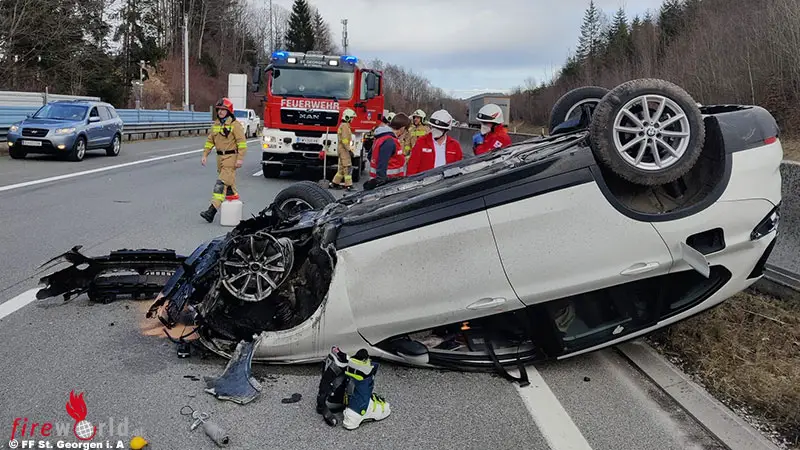 Oö: Überschlag nach Sekundenschlaf auf A 1 bei St. Georgen / A. → zwei Verletzte