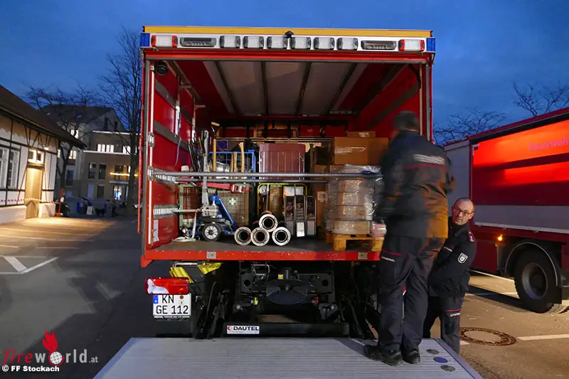Aus dem Landkreis Konstanz haben die Feuerwehren Allensbach, Engen, Gailingen, Gottmadingen, Hilzingen, Konstanz, Moos, Mühlingen, Radolfzell, Singen, Steißlingen, Stockach, Tengen und die Werkfeuerwehr Takeda ihre Spenden nach Engen und Stockach gebracht. Von dort sind um 16:00 Uhr zwei Gerätewagen Logistik (GW-L) aus Stockach und Engen sowie ein Mannschaftstransportwagen (MTW) mit Anhänger aus Stockach nach Fellbach aufgebrochen. Die Resonanz war enorm, die heute in Richtung Fellbach gestarteten Fahrzeuge sind randvoll beladen.