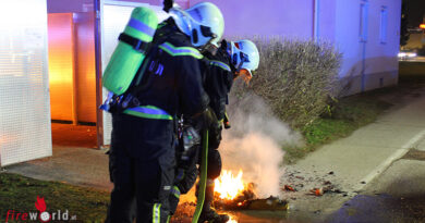 Bei eintreffen dieser hatte ein Anwohner bereits einen ersten Löschversuch unternommen und damit eine weitere Ausbreitung verhindert. Die Feuerwehrkräfte kontrollierten das bereits abgelöschte Gerümpel und führten kleiner Nachlöscharbeiten durch. Ebenfalls erkundeten die Kräfte den Treppenraum des anliegenden Mehrfamilienhauses auf eine Verrauchung, da zum Zeitpunkt des Feuers die Hauseingangstür offenstand.