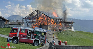 Schweiz: Brennende Paletten mit Isolationsplatten in Flums