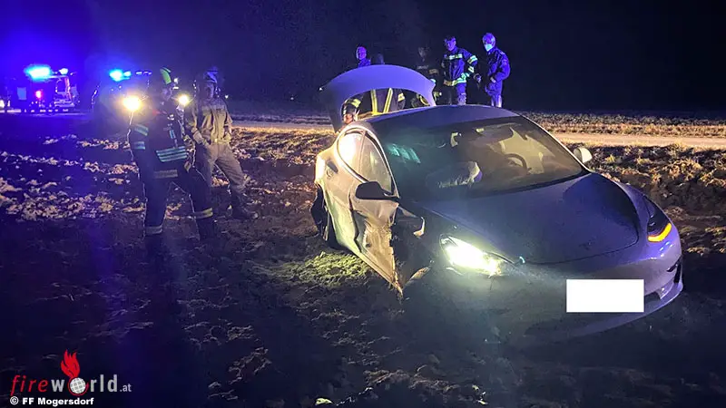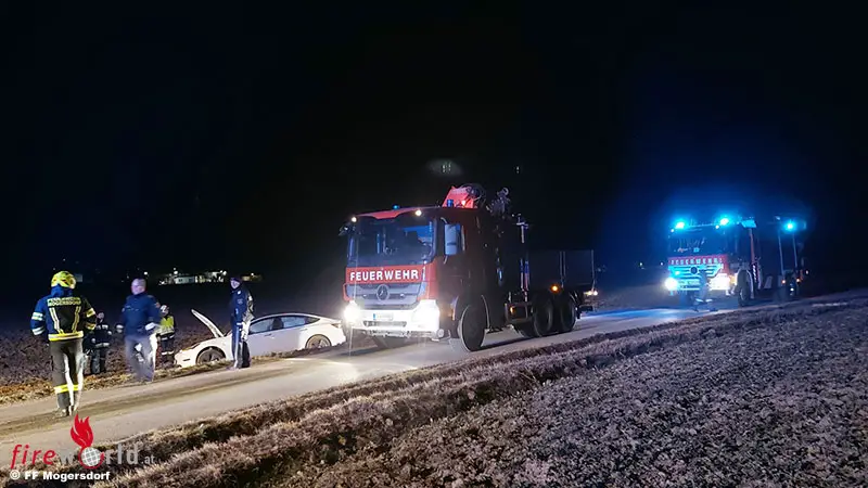 MOGERSDORF (BGLD): Am 11. März 2022 um 20:53 Uhr wurden die Feuerwehren Mogersdorf-Ort und Mogersdorf-Berg mittels Sirene zu einer Fahrzeugbergung am „Unteren Mitterweg“ in Mogersdorf (Bezirk Jennersdorf) alarmiert.