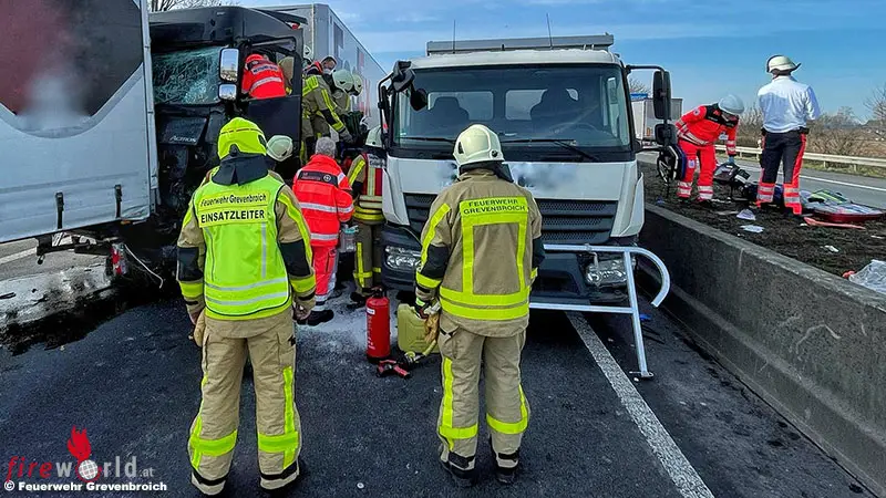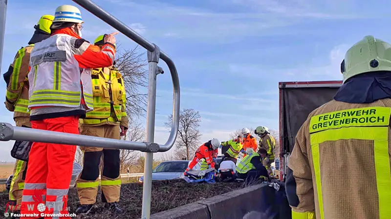 GREVENBROICH (DEUTSCHLAND): Bei einem schweren Unfall auf der Autobahn 46 zwischen den Anschlussstellen Grevenbroich Kapellen und Neuss-Holzheim wurden im Berufsverkehr am Mittwochmorgen, 16. März 2022, gegen 08:10 mehrere Fahrer verletzt.