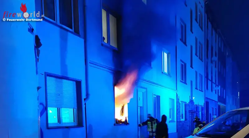 mehr lesen ...DORTMUND (DEUTSCHLAND): Bei einem Wohnungsbrand rettet die Feuerwehr Dortmund am 23. März 2022 drei Personen